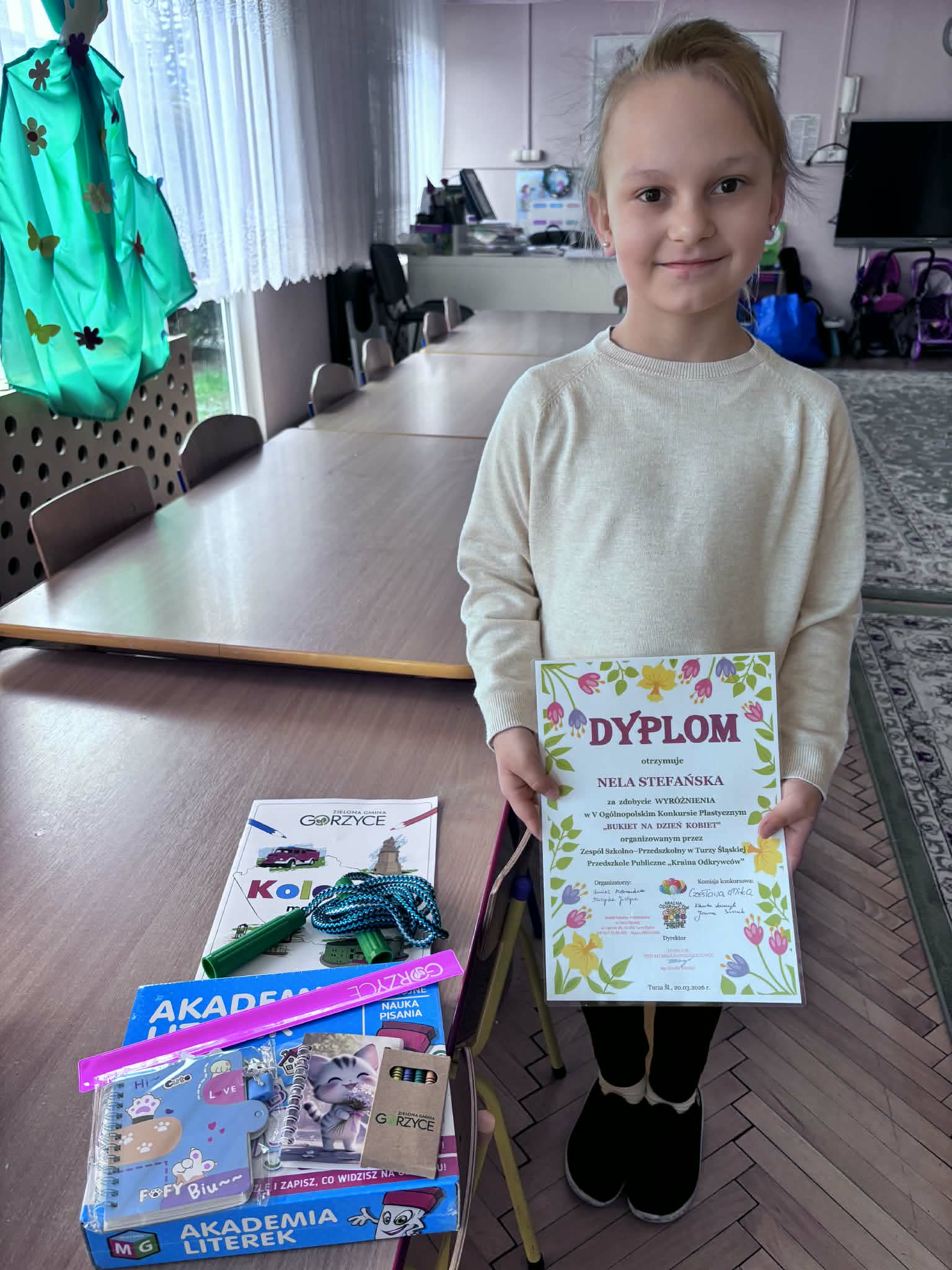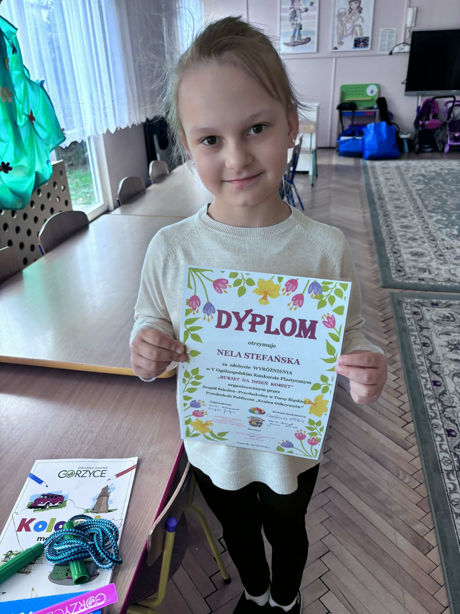 Nela Stefańska z gr V otrzymała wyróżnienie w Ogólnopolskim Konkursie Plastycznym " Bukiet na dzień kobiet" Gratulujemy!