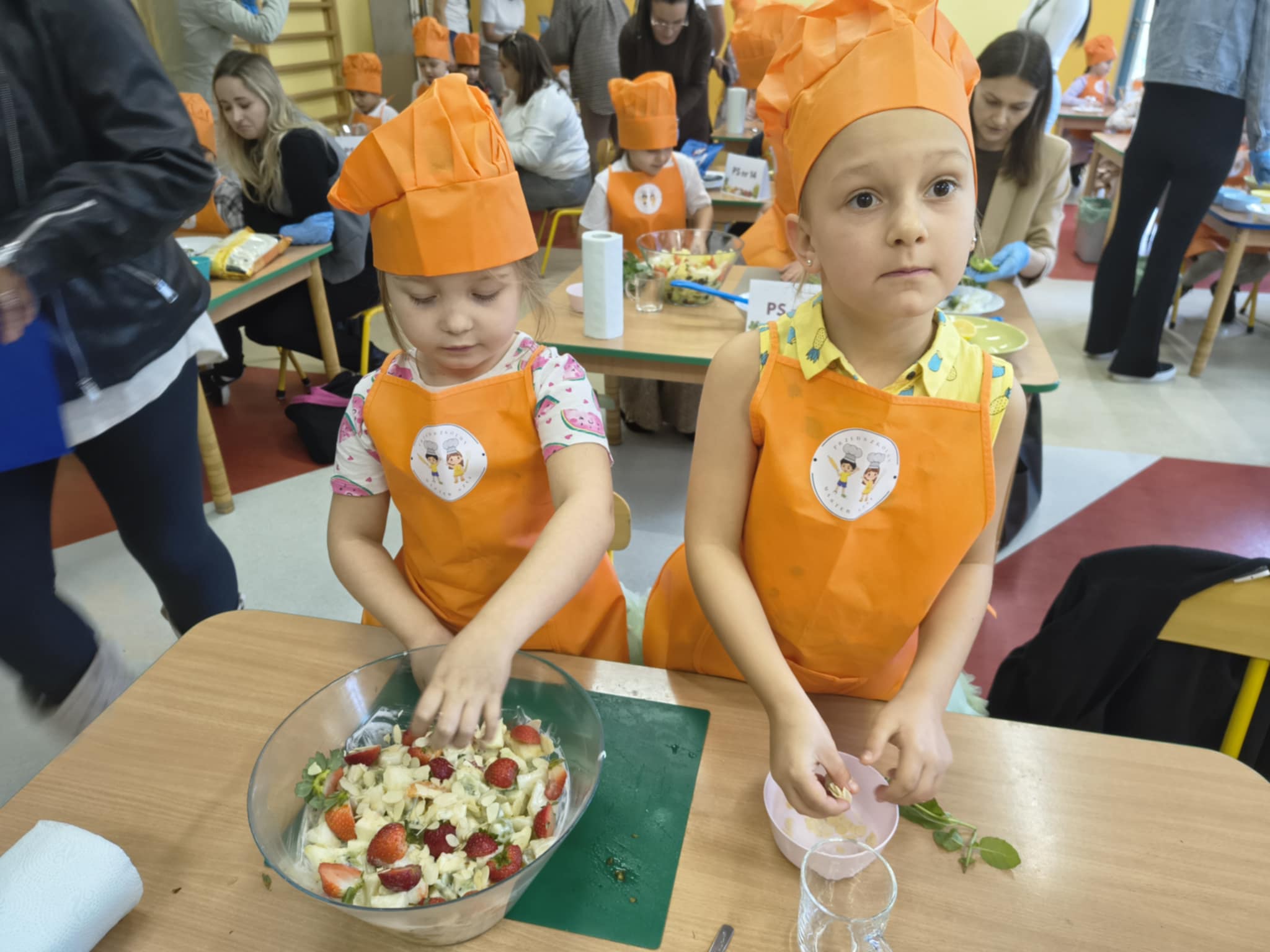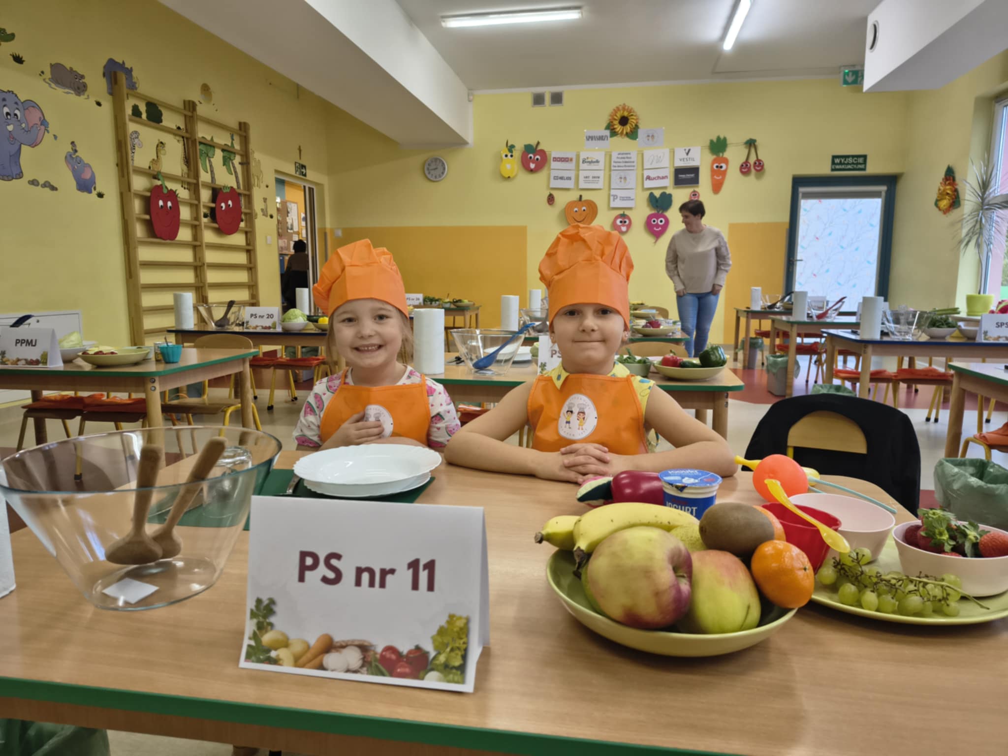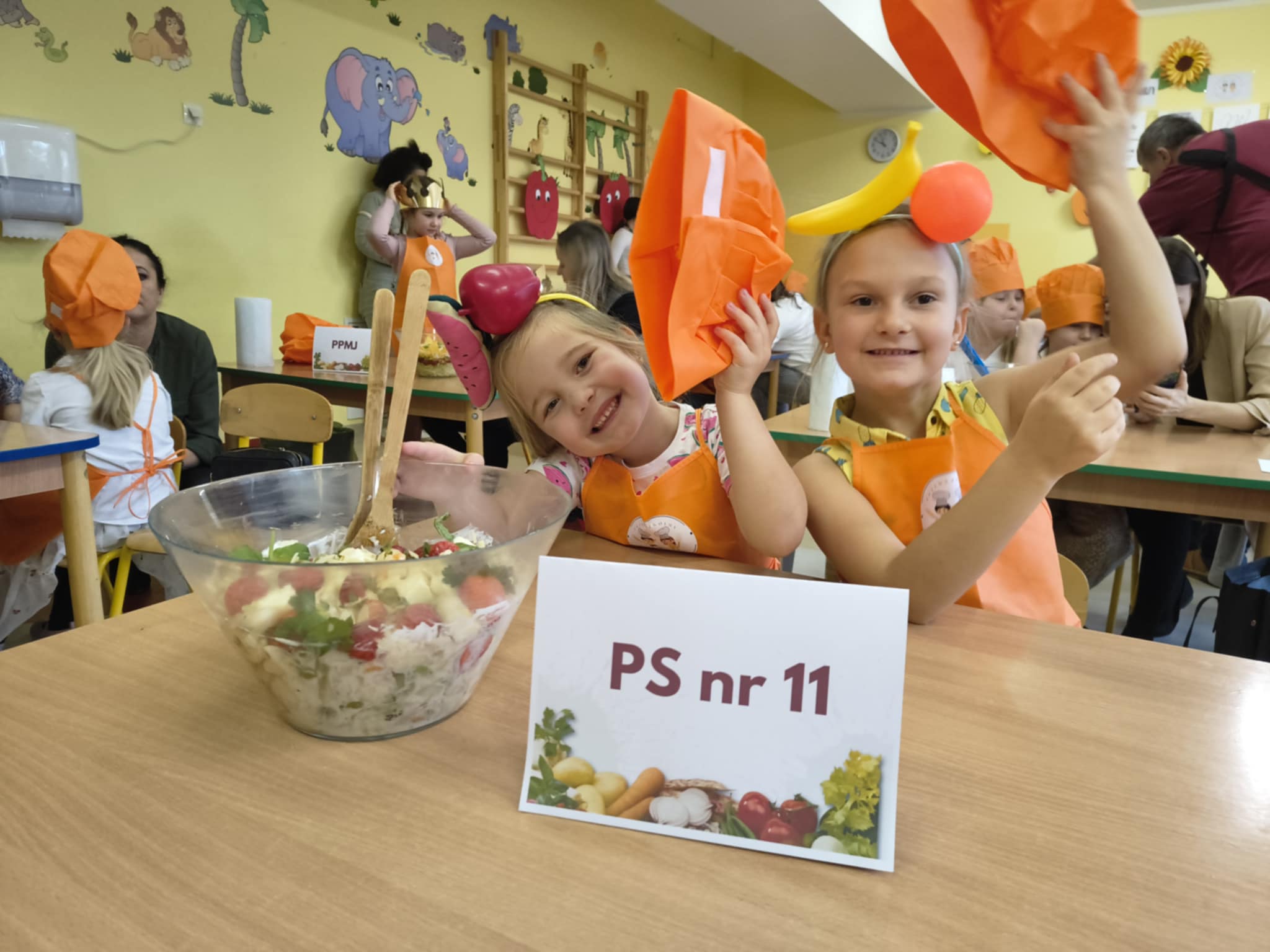 W dniu 21.10.2025 r dziewczynki Mają W i Nela S z gr.5 wzięły udział w konkursie "Przedszkolny Master Szef" zorganizowanym przez Przedszkole Samorządowe nr 26. Tematem konkursu była dowolna sałatka, którą należało przygotować i zaprezentować przed jury. Kiedy jury obradowało, wszyscy uczestnicy wzięli udział w zabawach ruchowych, które zakończyły się pysznym zdrowym poczęstunkiem. Dziewczynki za udział w konkursie otrzymały dyplomy.