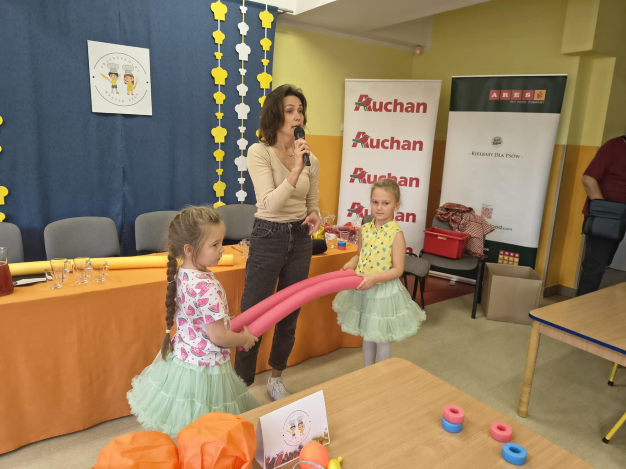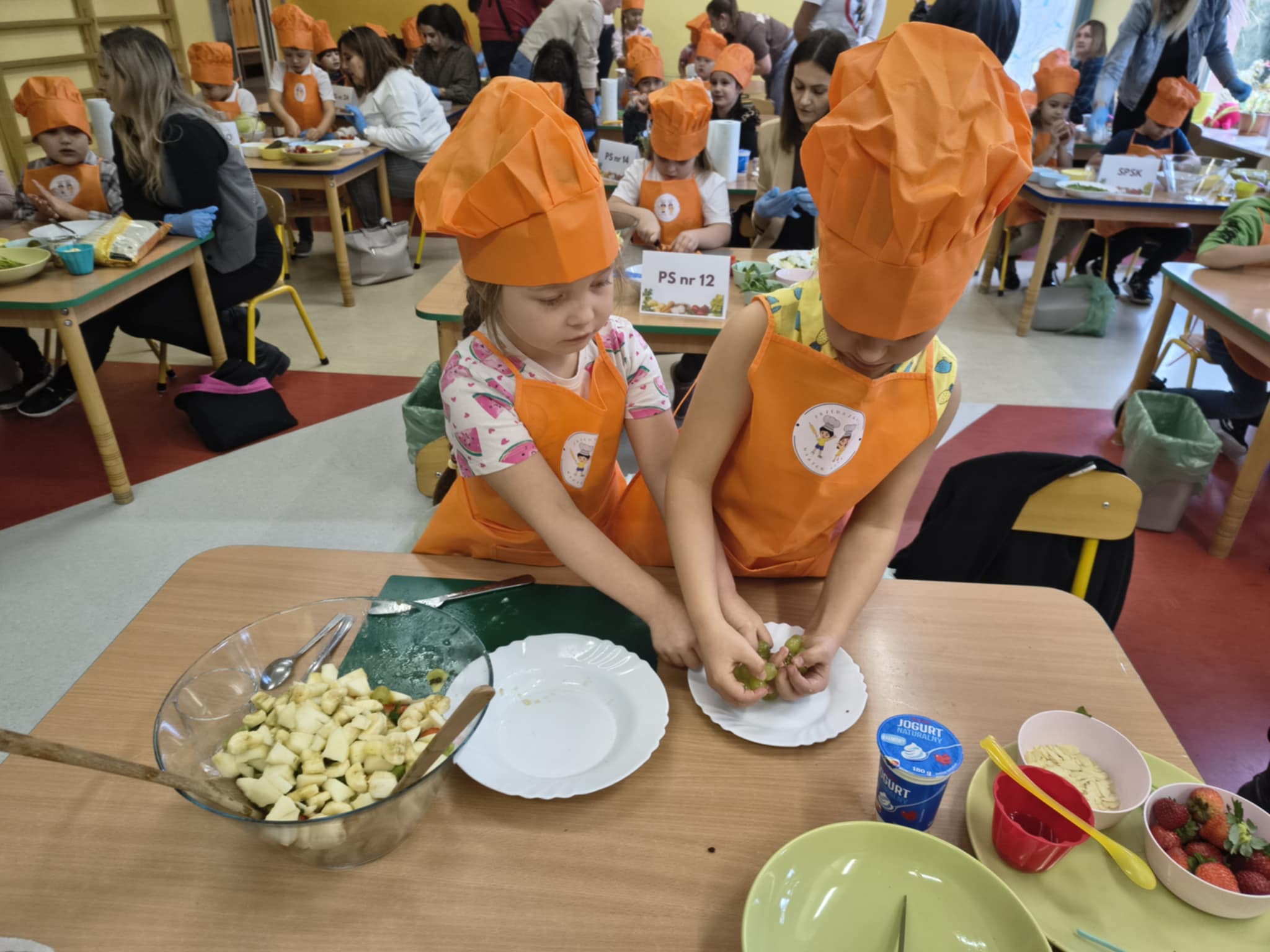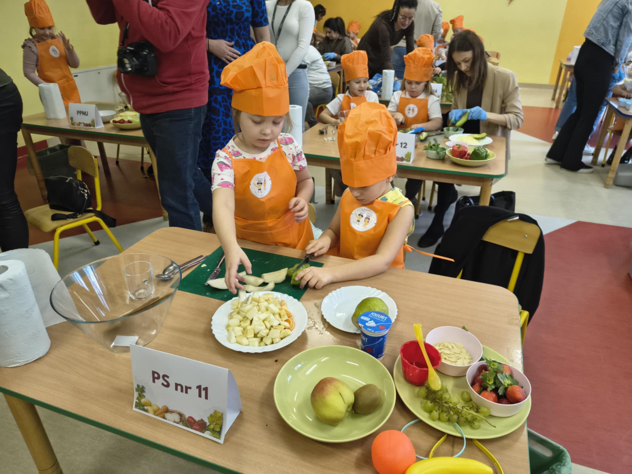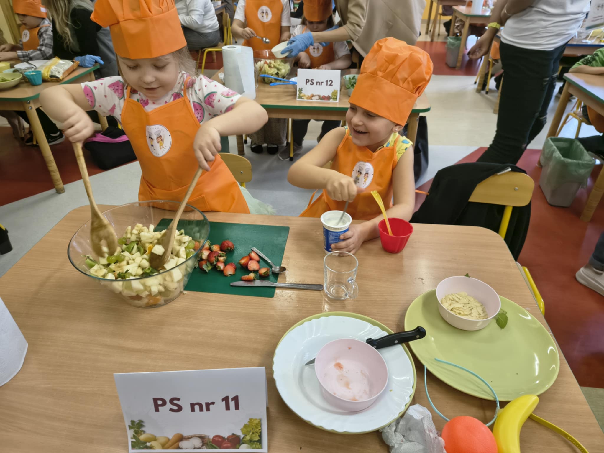 W dniu 21.10.2025 r dziewczynki Mają W i Nela S z gr.5 wzięły udział w konkursie "Przedszkolny Master Szef" zorganizowanym przez Przedszkole Samorządowe nr 26. Tematem konkursu była dowolna sałatka, którą należało przygotować i zaprezentować przed jury. Kiedy jury obradowało, wszyscy uczestnicy wzięli udział w zabawach ruchowych, które zakończyły się pysznym zdrowym poczęstunkiem. Dziewczynki za udział w konkursie otrzymały dyplomy.